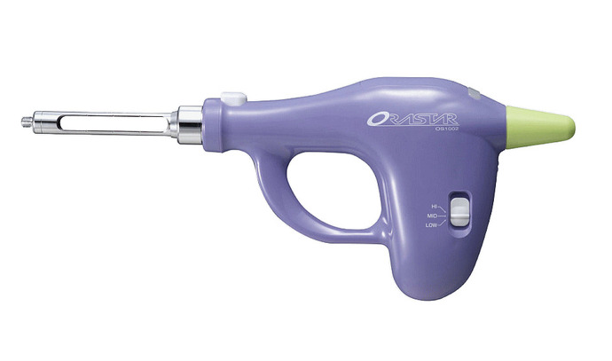 むし歯治療では、できるだけ痛みを抑えるために電動注射器を使っています。